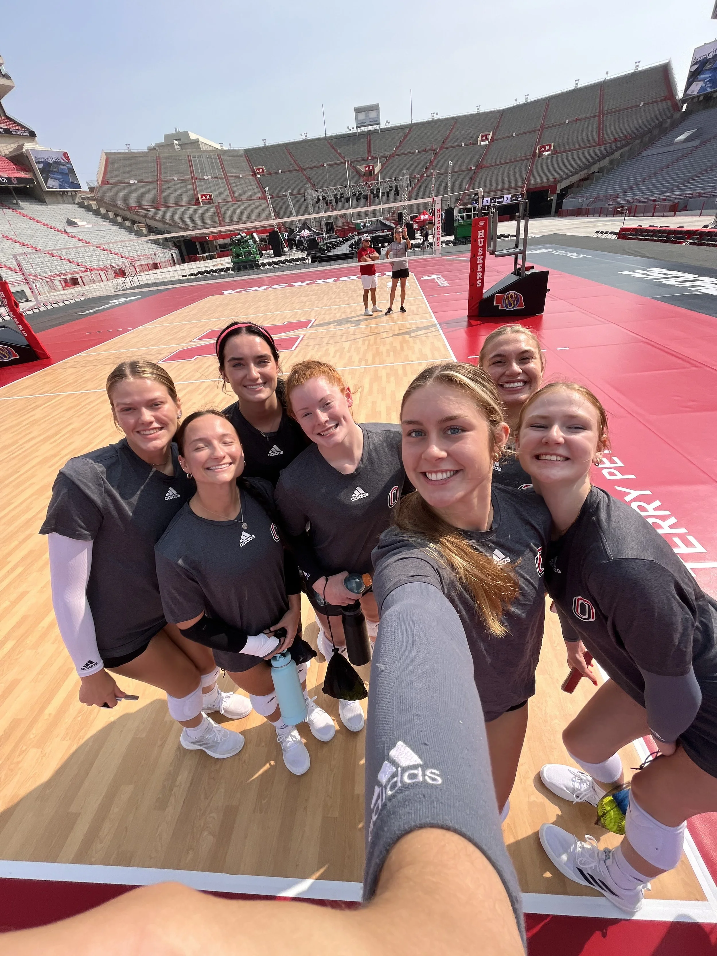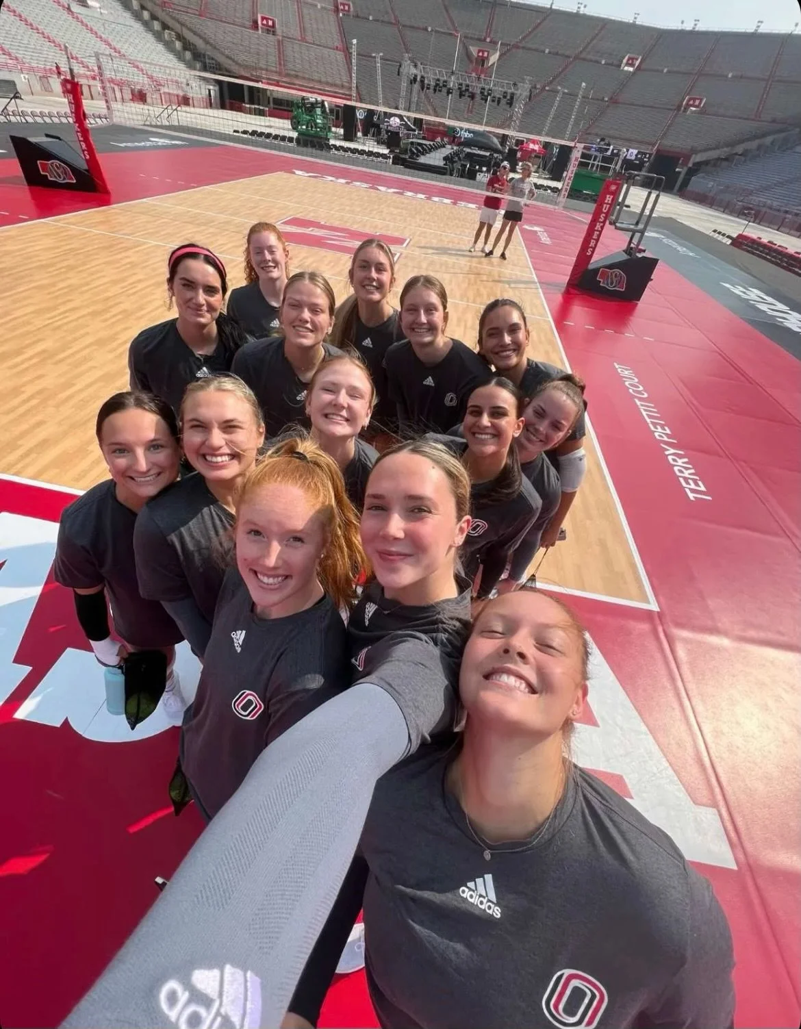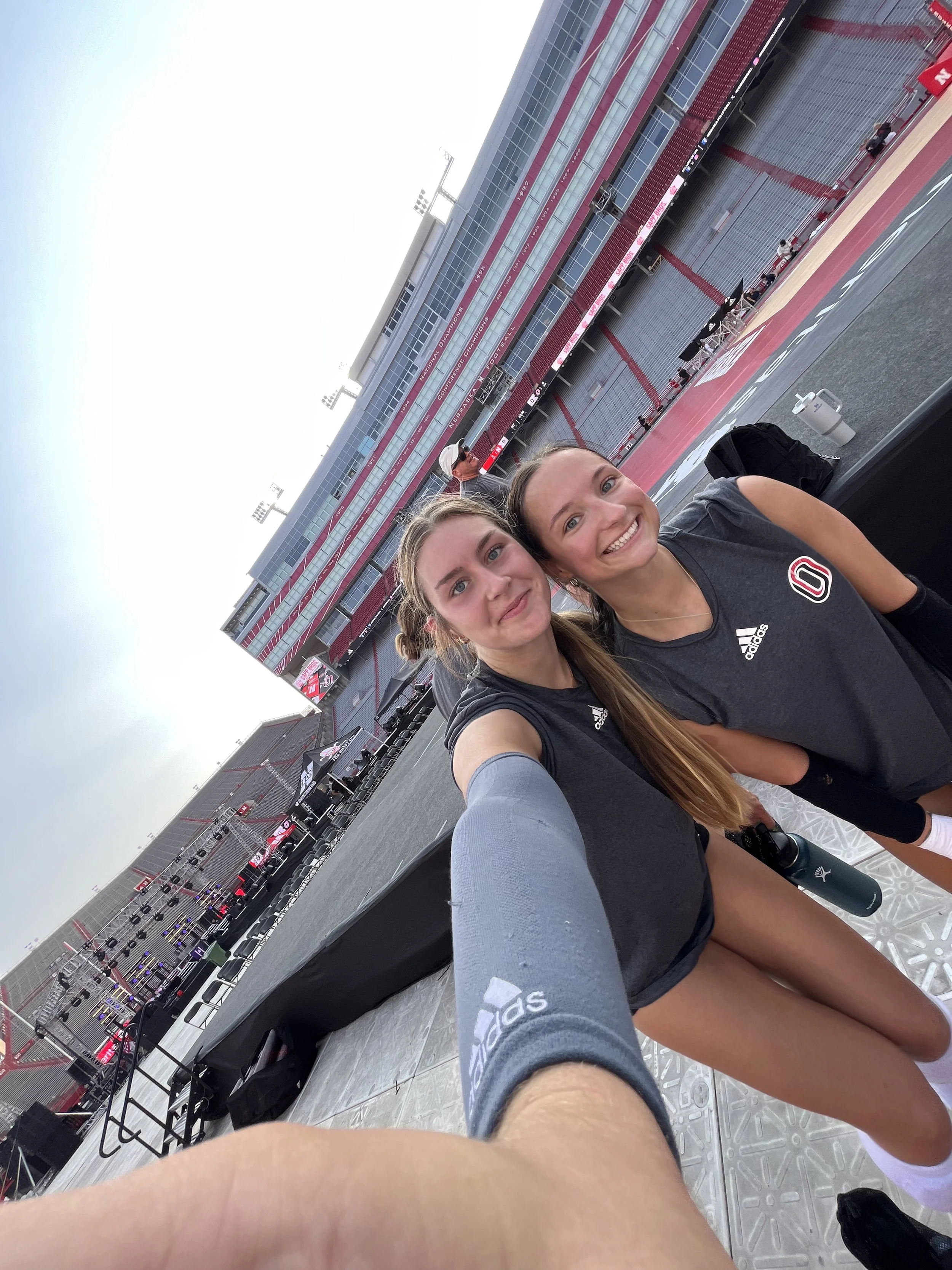 Kali Jurgensmeier, Amanda Hardt, and the rest of the UNO Volleyball team got their first glimpse at what it’ll be like playing outside at UNL Memorial Stadium. Tuesday September 29th, 2023 the team stepped onto a raised court inside Memorial Stadium. Expected environment for the start of the match… 82 degrees and sunny, with a side of 90,000+ passionate fans setting an NCAA record for attendance. Stay tuned for follow-up articles on what it was like playing in it.