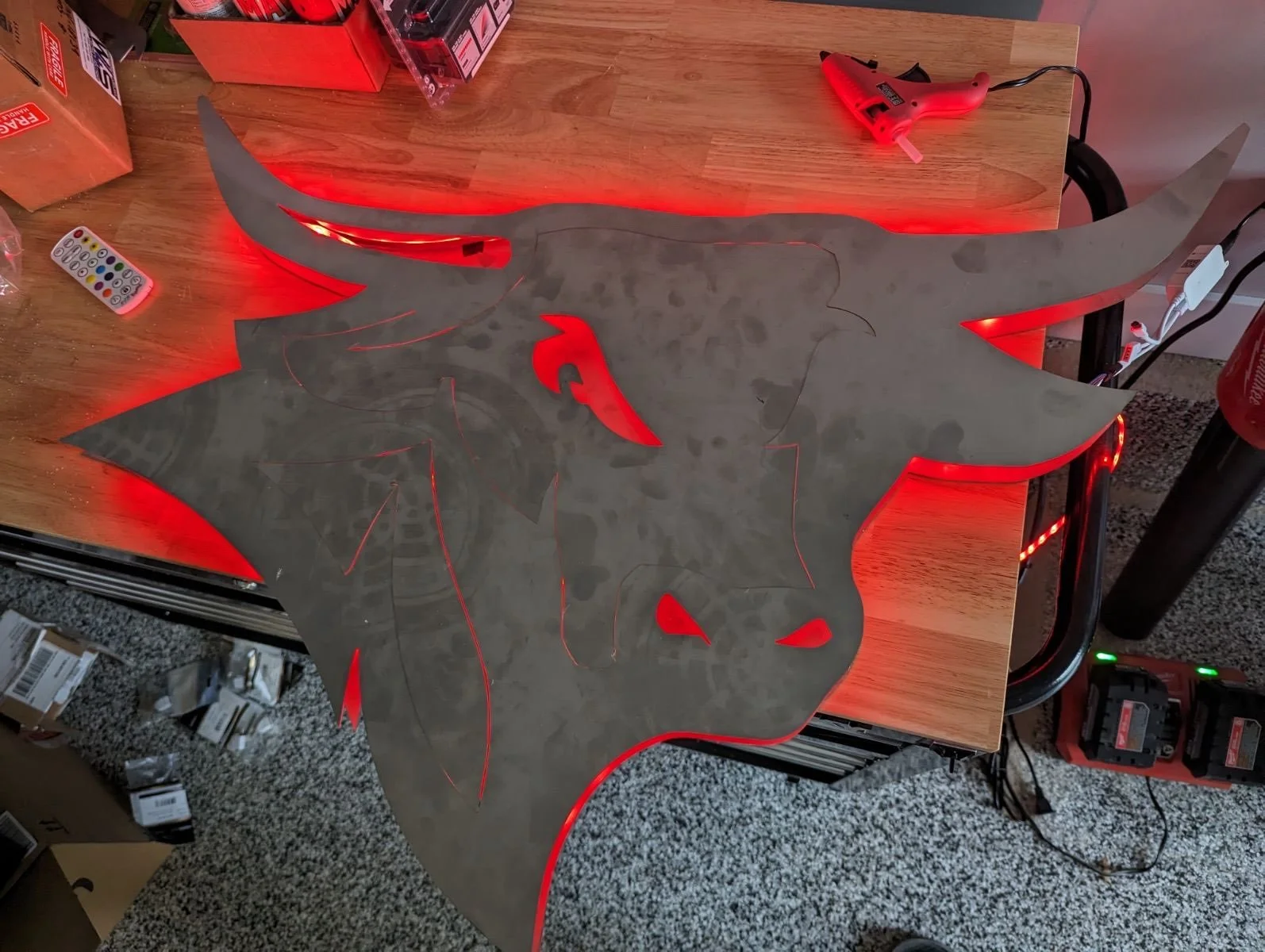 The locker room of the defending Summit League Champion Omaha Women's Soccer team is getting some upgrades. The Steel Maverick with LED will be the focal point of the room as you walk in. The bull will be surrounded by photos printed on steel that stand off the wall for added dimension.